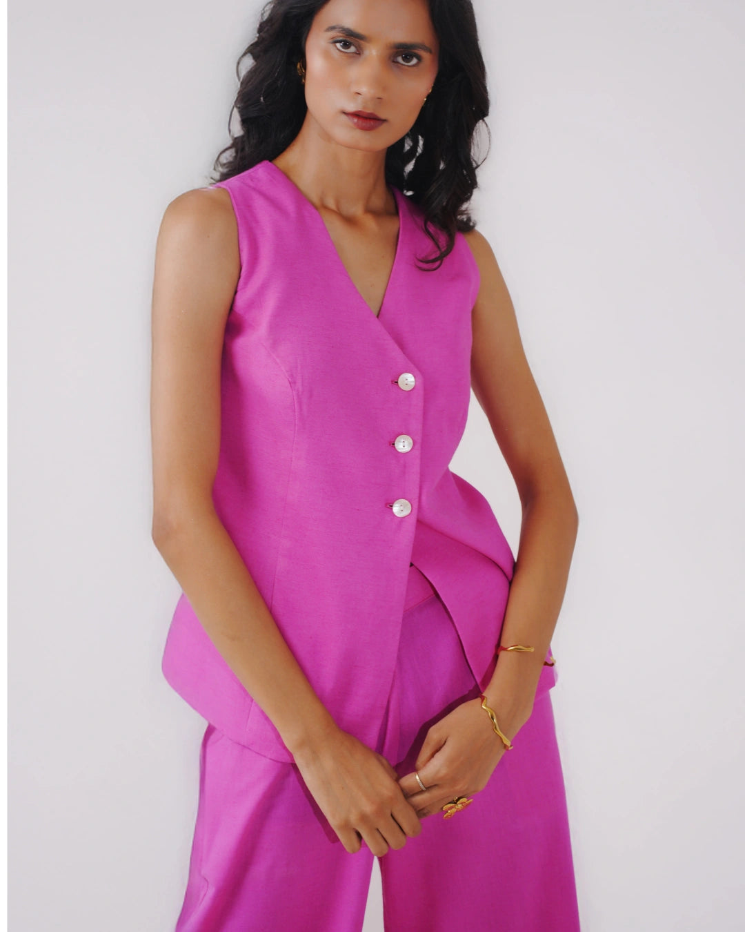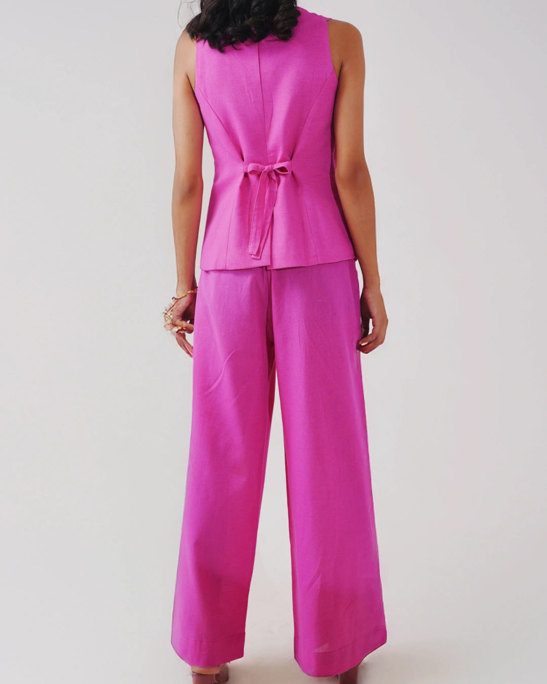 Soho Linen Button-Front Vest & Pant Set - Rosave