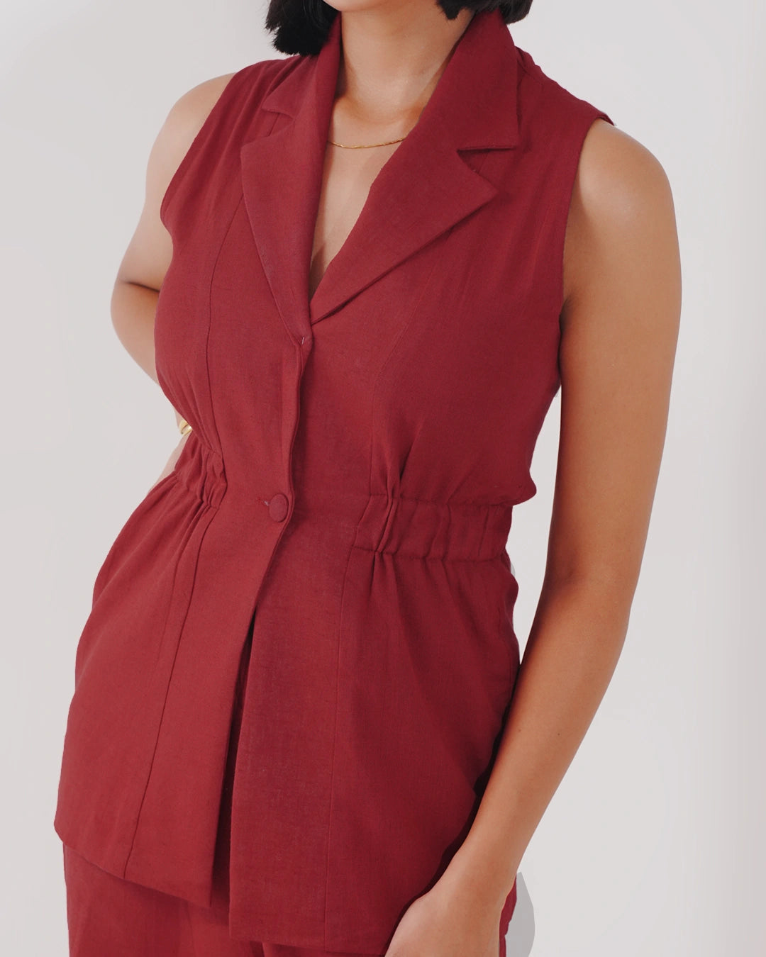 Kaia Linen Cinched Blazer Set - Garnet