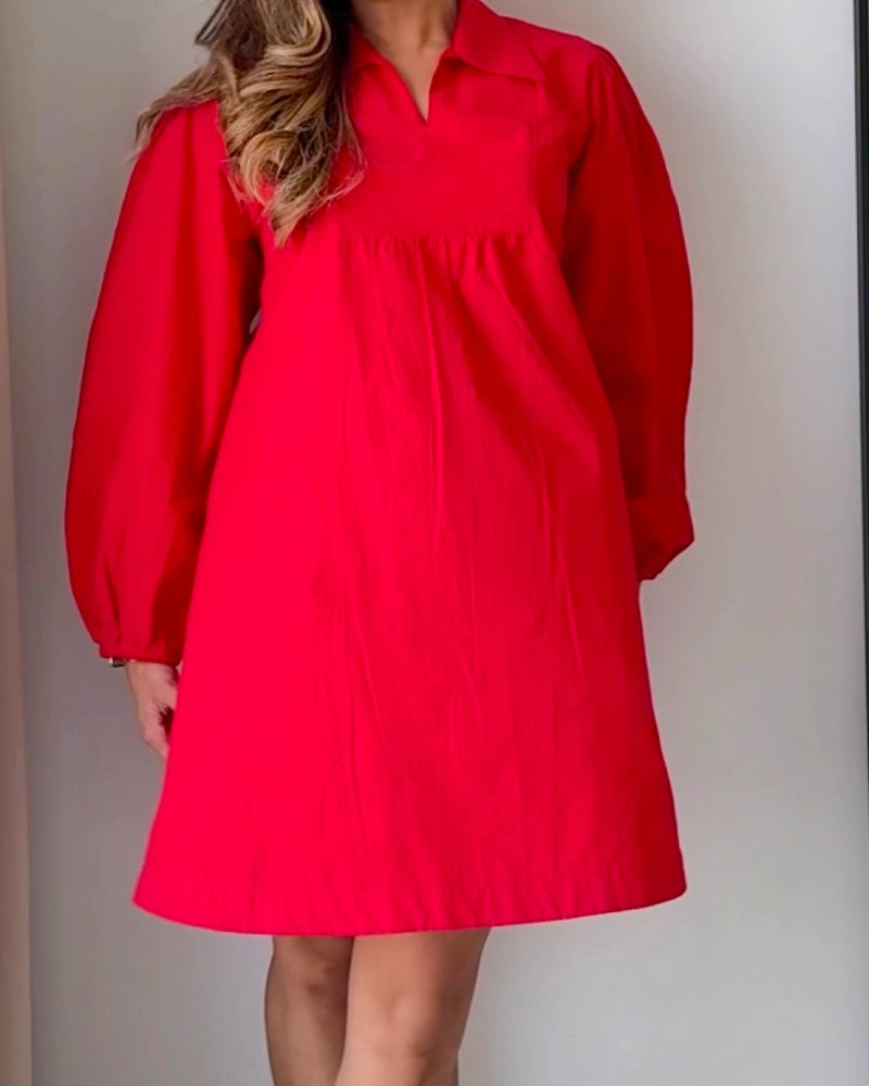 This dress includes voluminous balloon sleeves and a wide hem. High-quality cotton poplin dress.