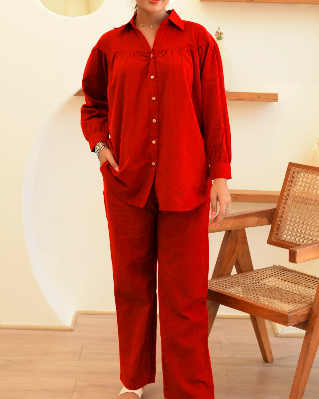 This coord-set includes a shirt and pants. High-quality premium linen co-ord set.