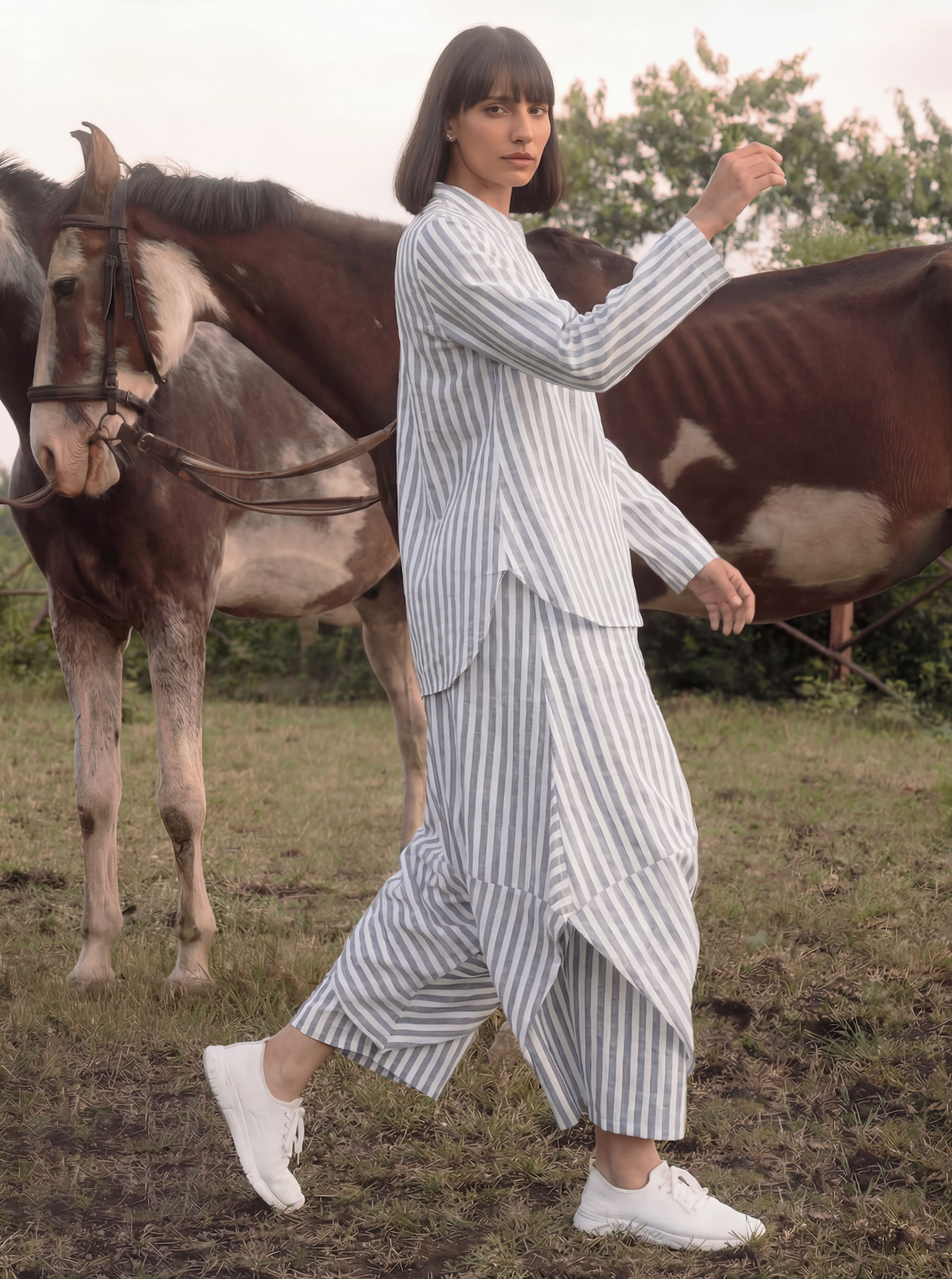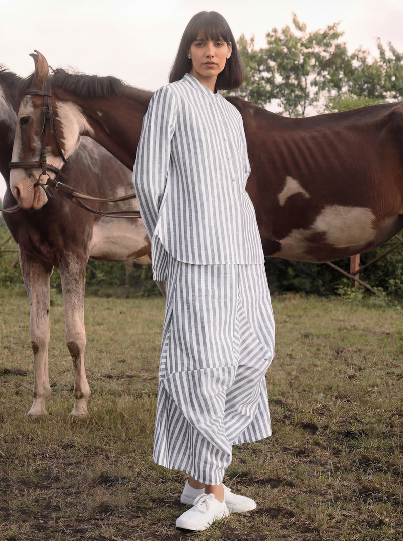 Turn heads with our Paddock Pinstripe Linen Co-ord Set, a crisp striped statement made for effortless elegance and everyday ease. 🤍✨