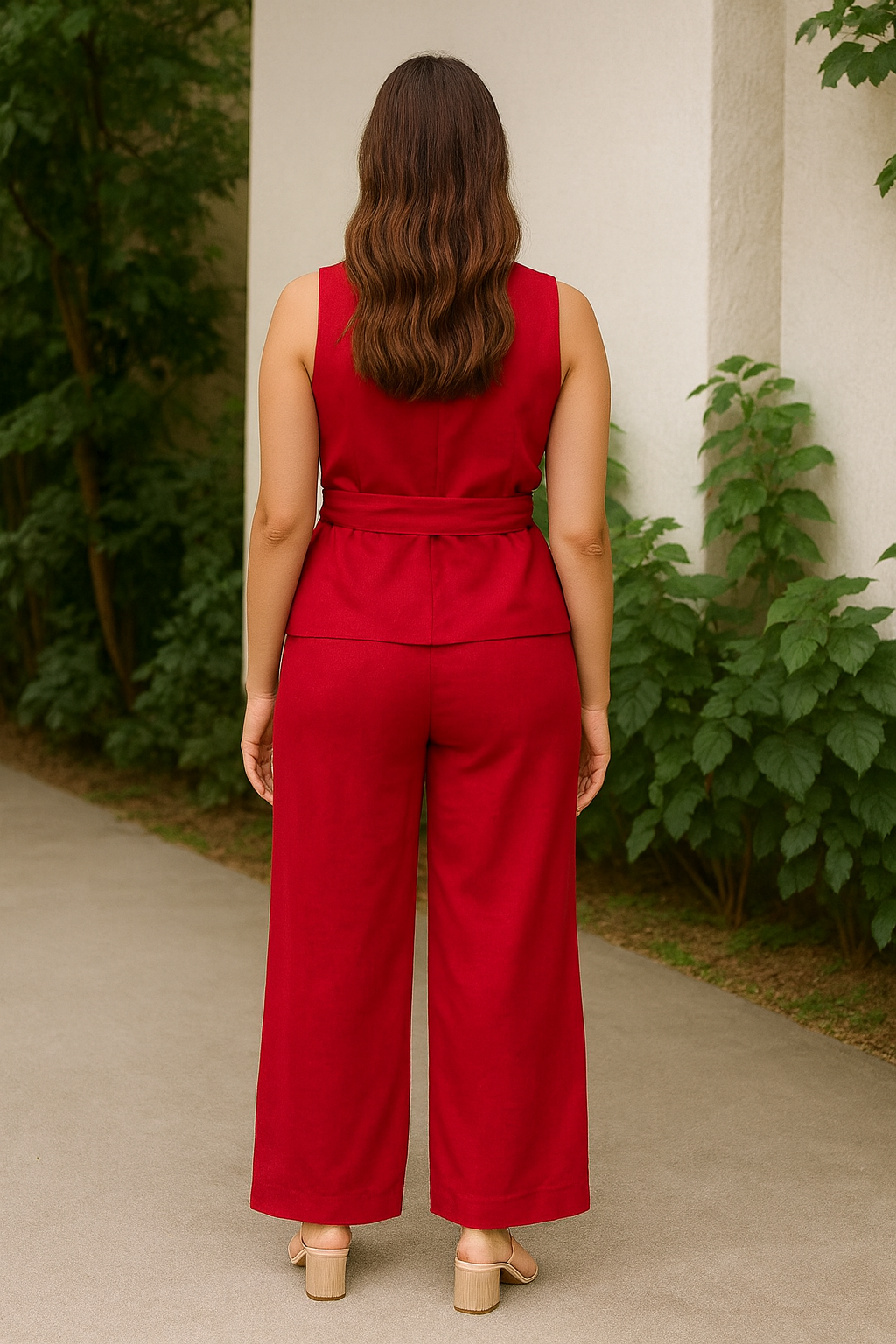 Turn heads with our Scarlet Red Cotton-Linen Co-ord Set, designed for effortless style and everyday elegance. 🌸